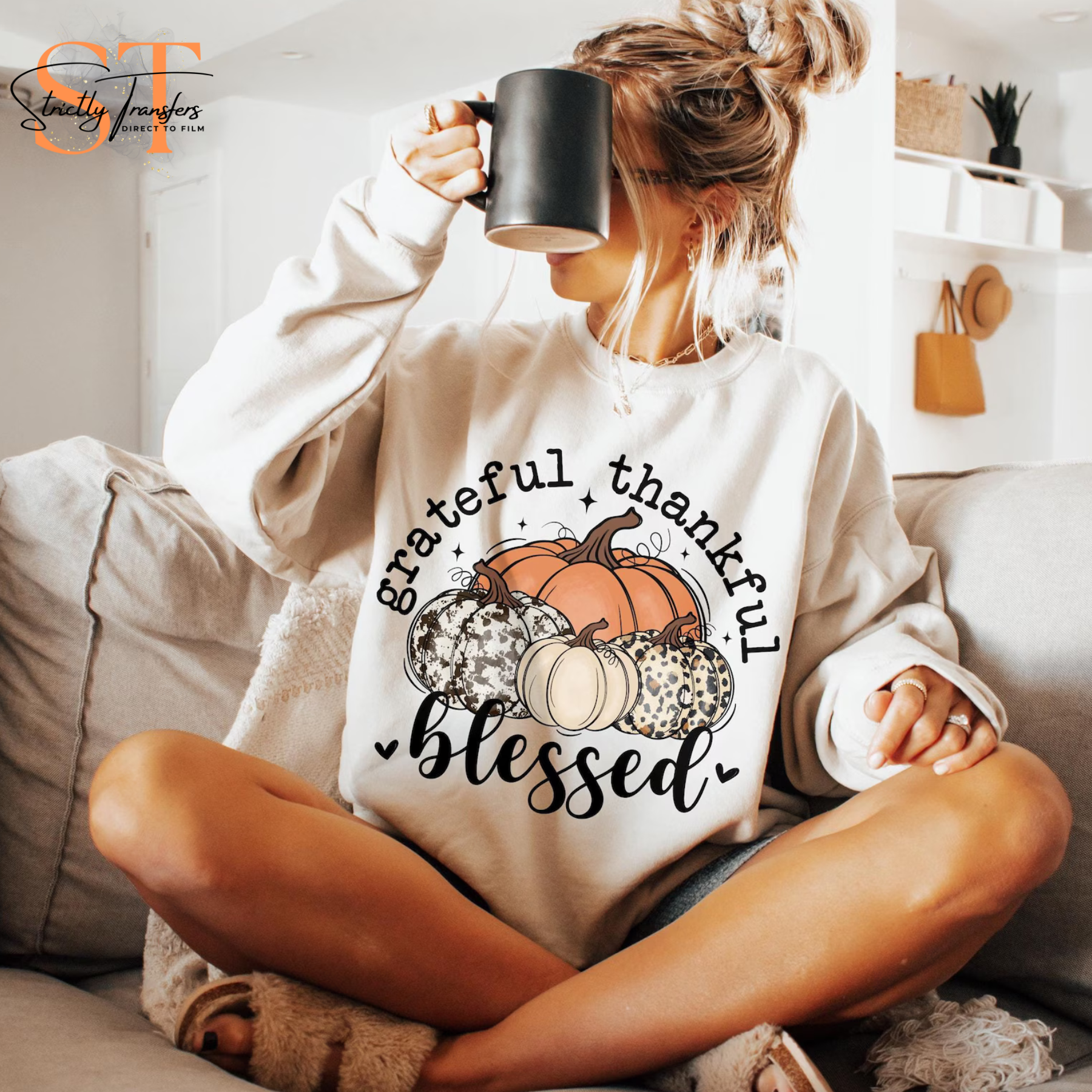 Grateful Thankful Blessed Pumpkins Direct to Film Transfers