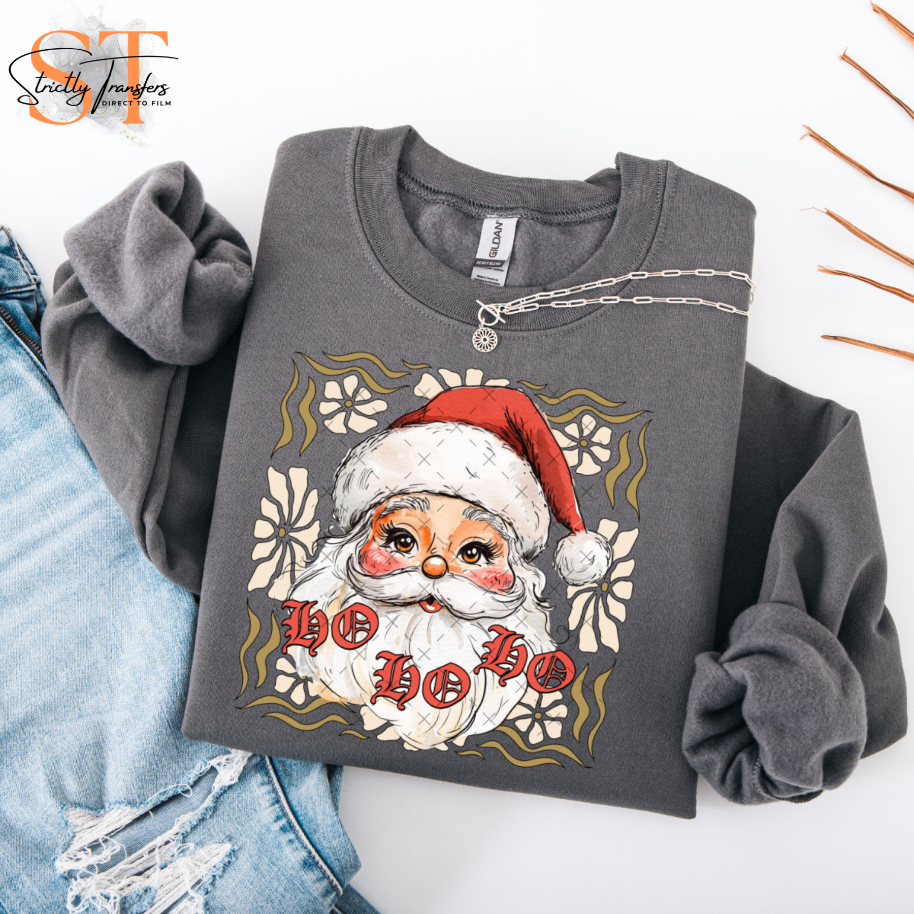 Ho Ho Ho Floral Santa Direct to Film Transfers