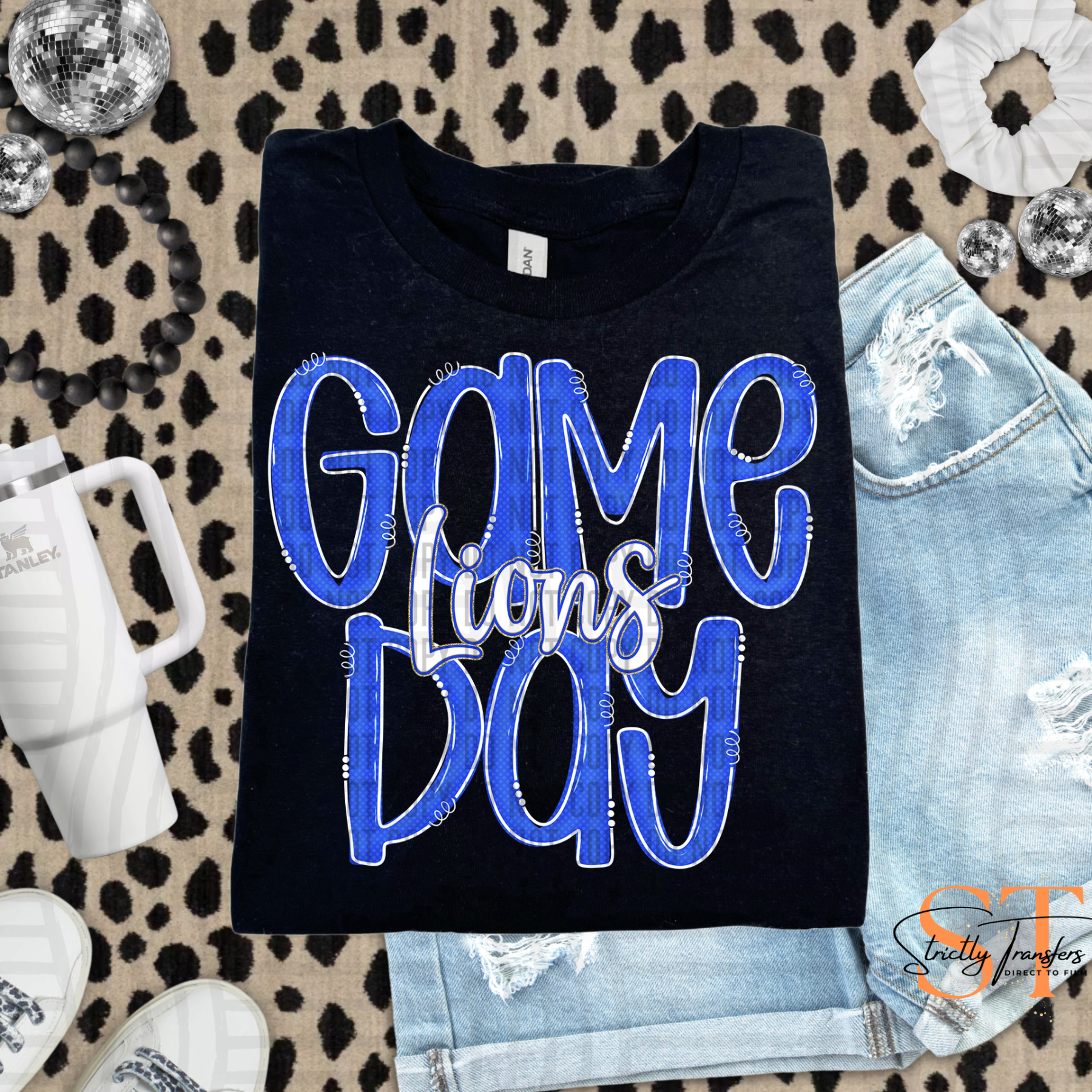 Lions Blue Game Day Doodle Direct to Film Transfers
