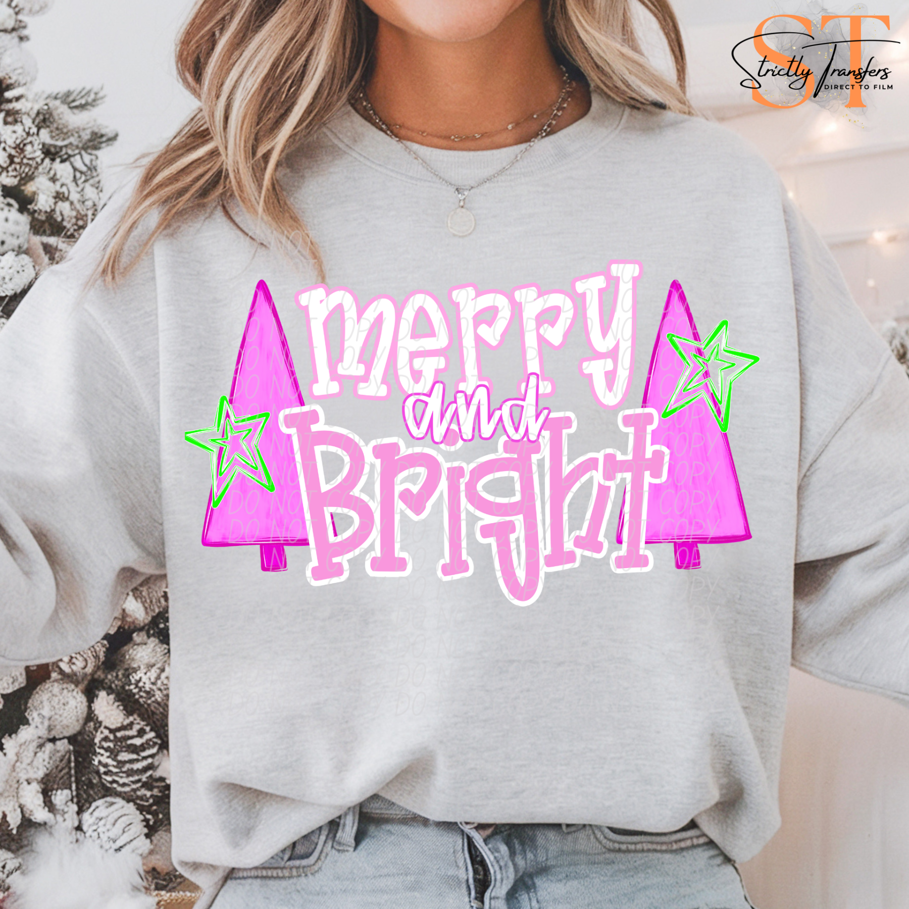 Merry & Bright Pink Trees Direct to Film Transfers