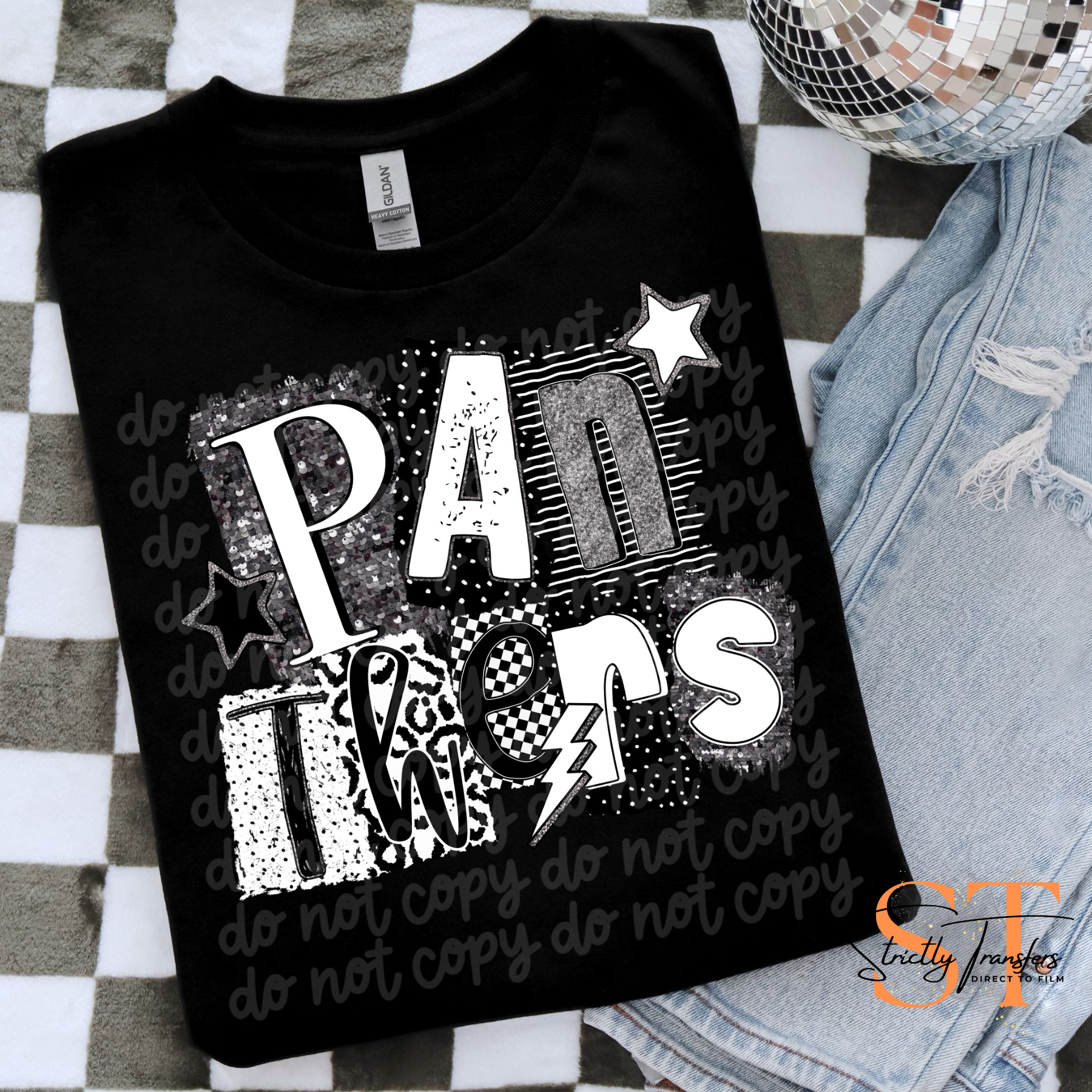 Panthers Black & White Collage Direct to Film Transfers