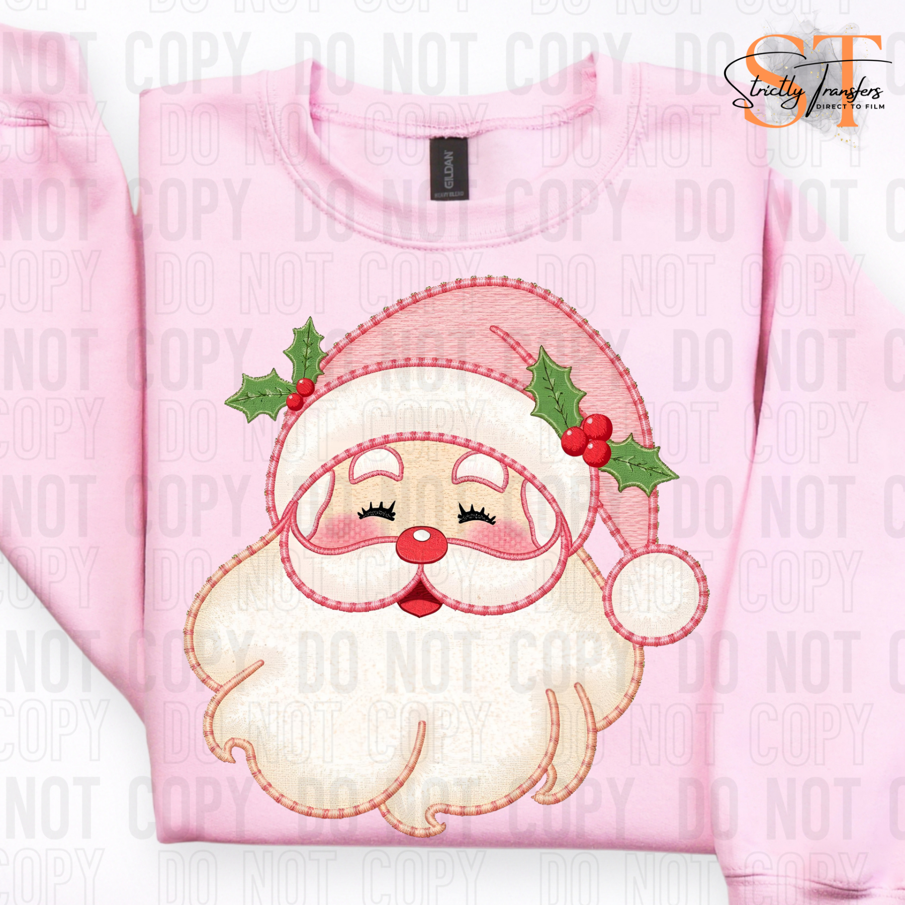 Pink Santa Faux Embroidery Direct to Film Transfers