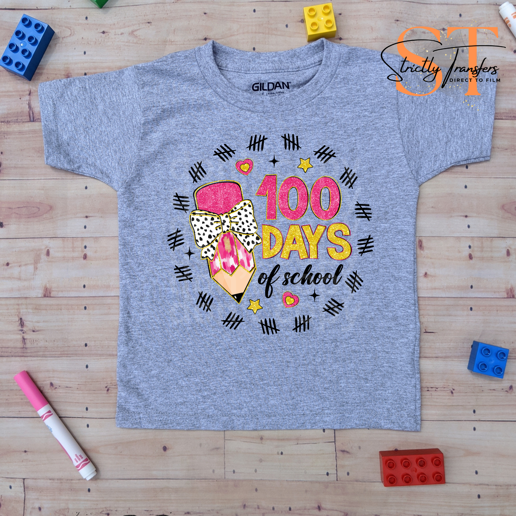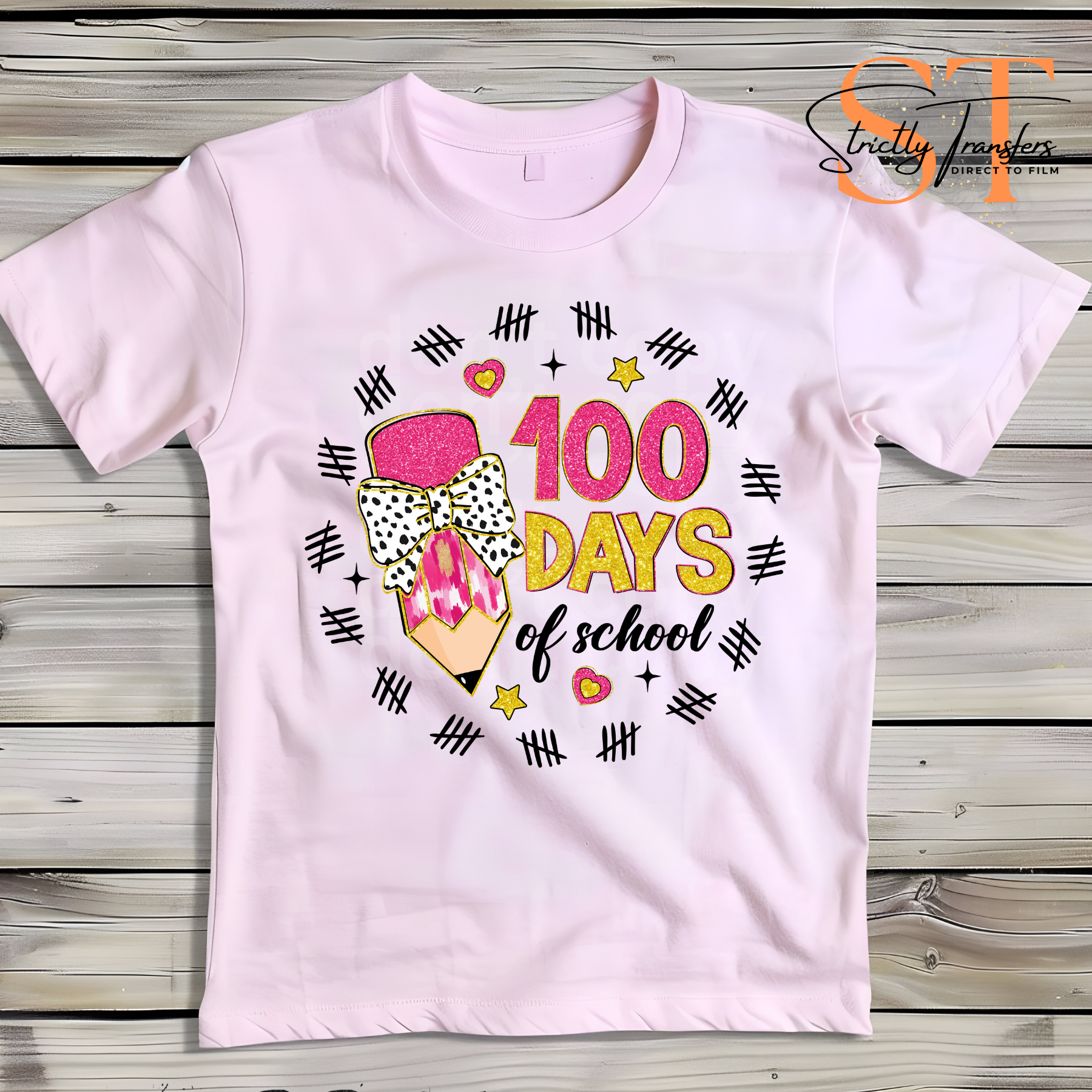 100 Days of School Pencil Tally Direct to Film Transfers