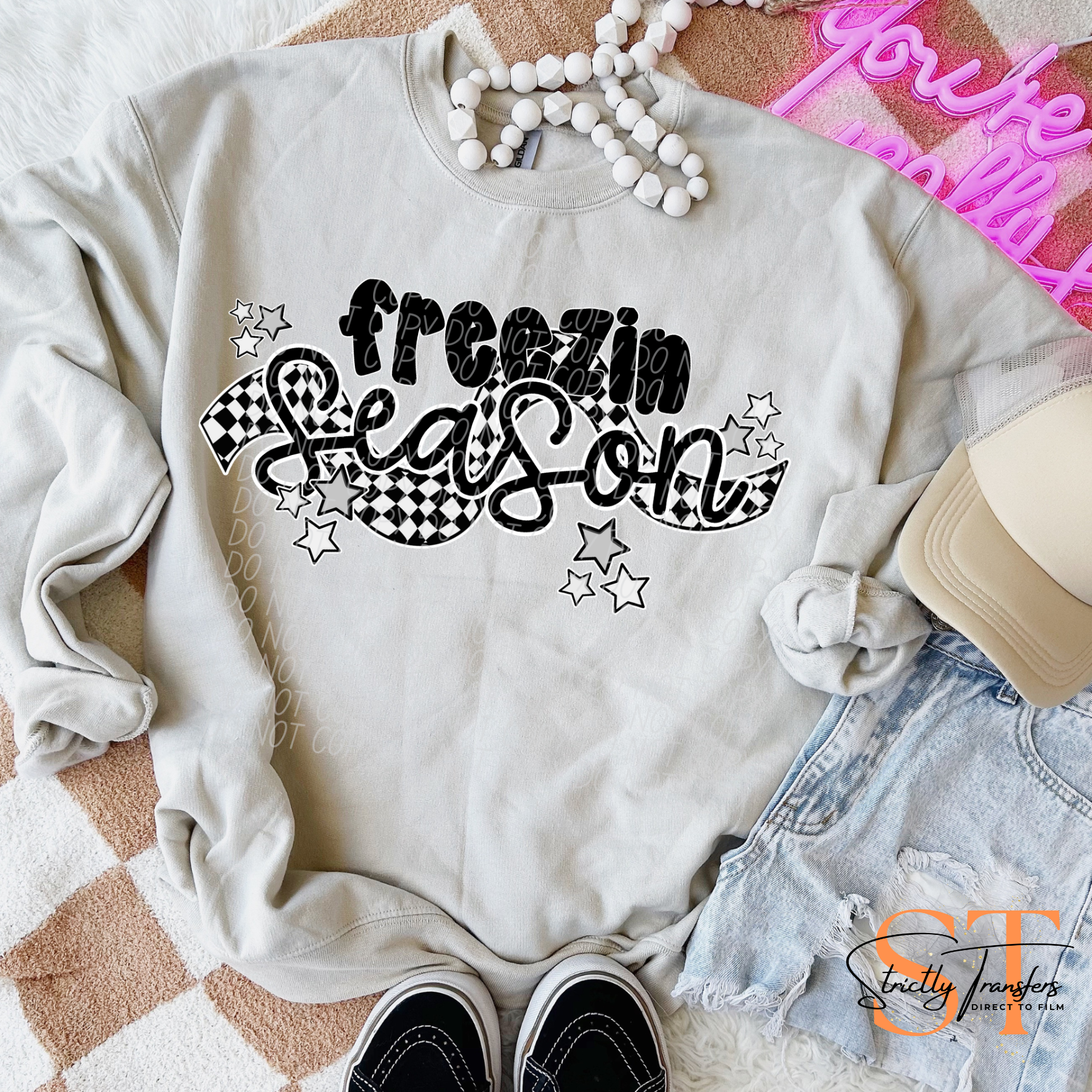 anywhere between 265 degrees to 300 degrees. Lower temps for polyester, higher