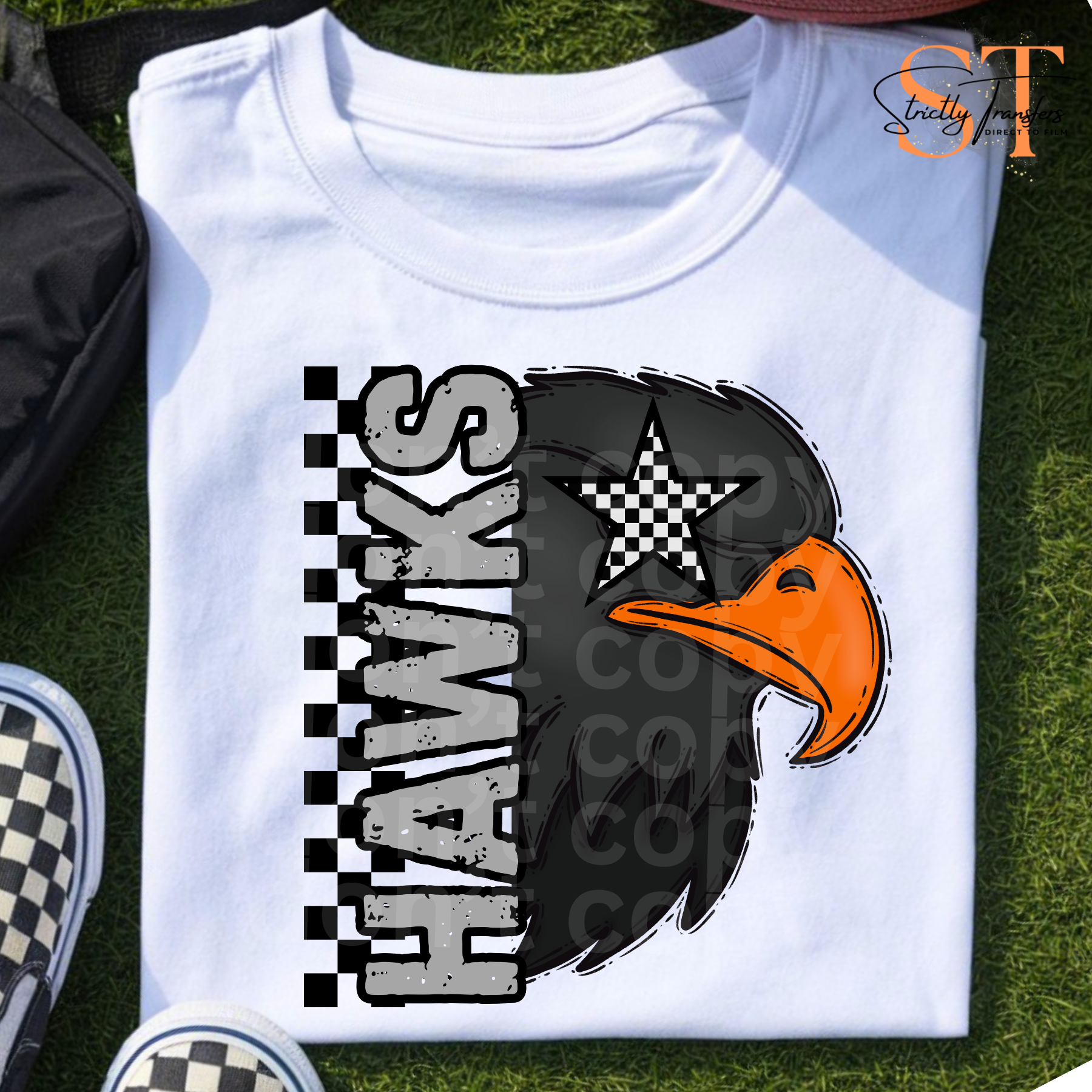 Hawks Checker Star Mascot Head Direct to Film Transfers