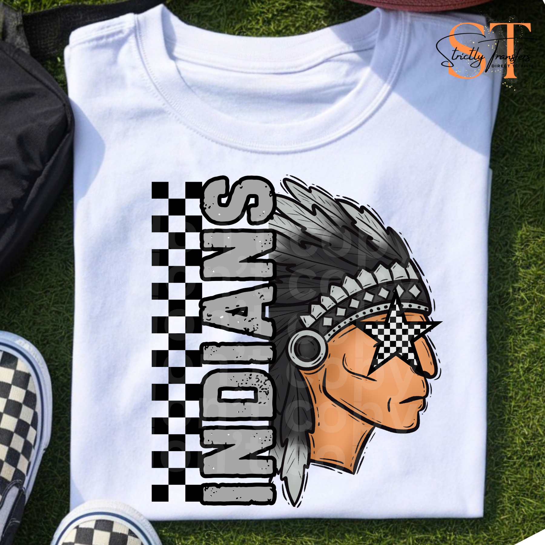 Indians Checker Star Mascot Head Direct to Film Transfers