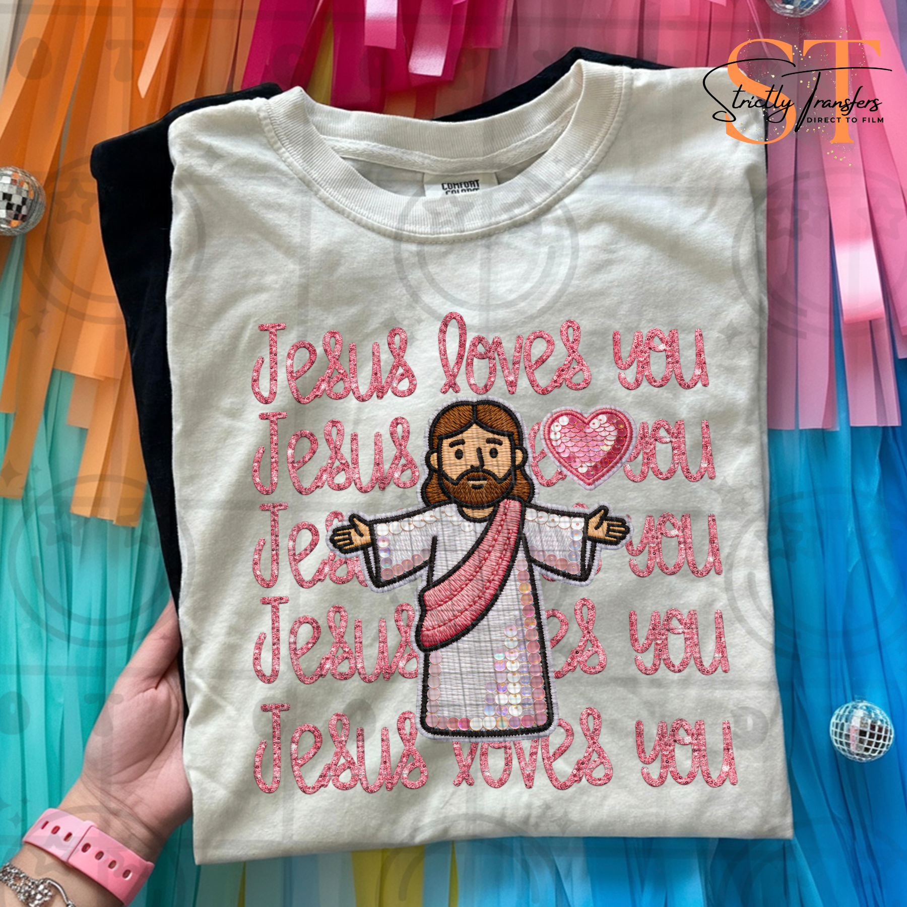 Jesus Loves You Pink Direct to Film Transfers