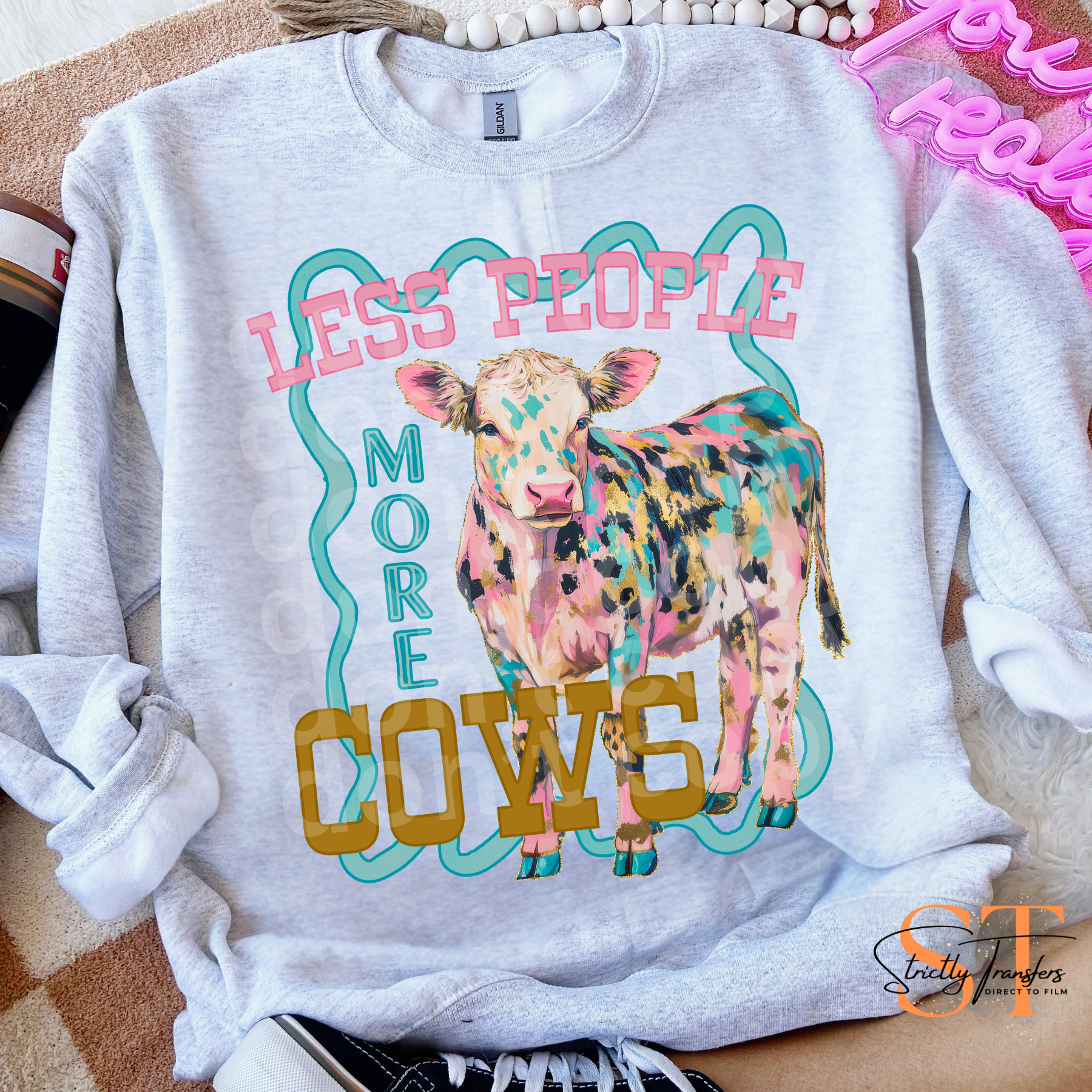Less People More Cows - 2 options Direct to Film Transfers
