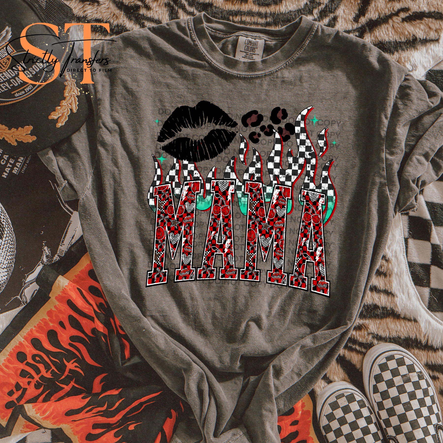 Mama Checkered Flames Direct to Film Transfers