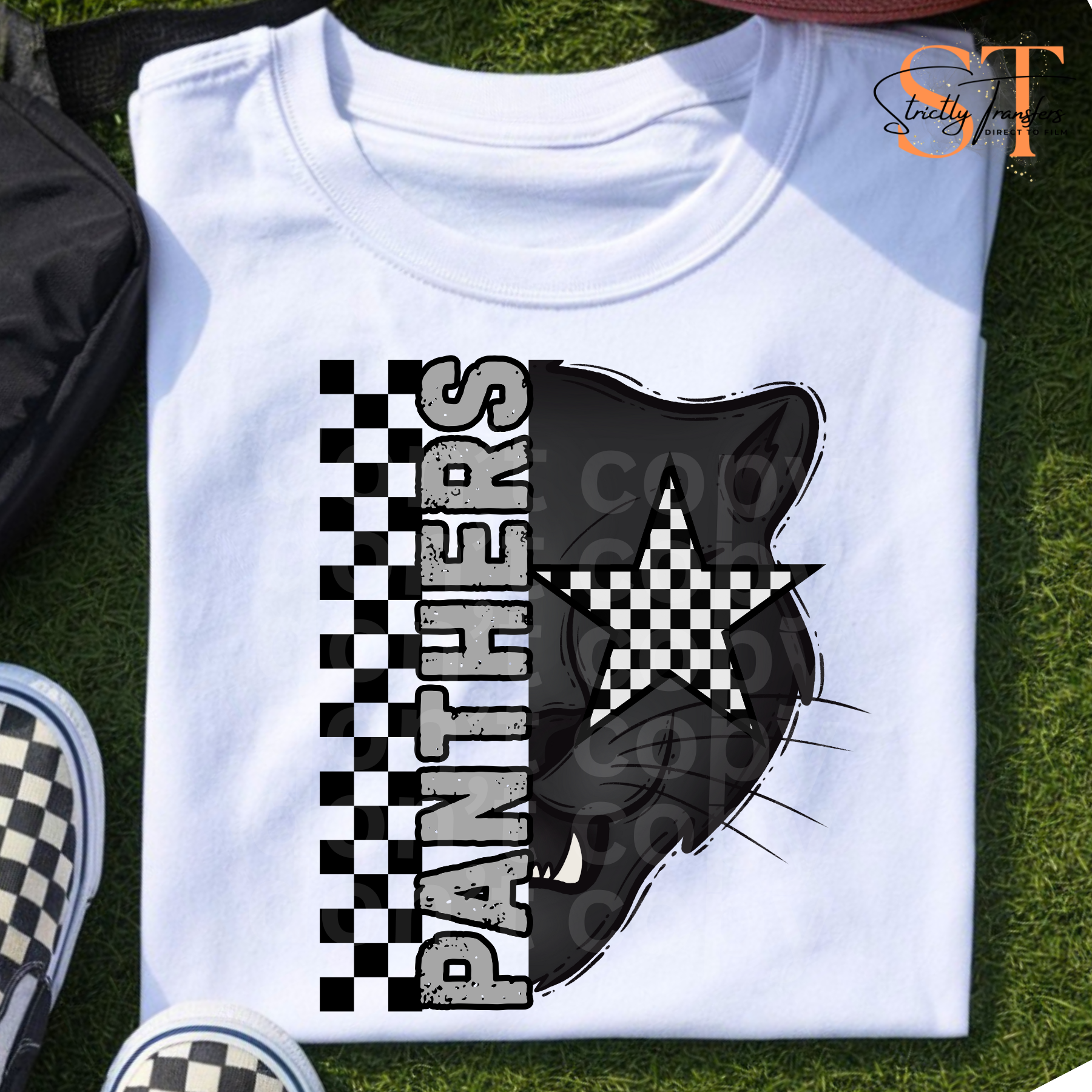 Panthers Checker Star Mascot Head Direct to Film Transfers