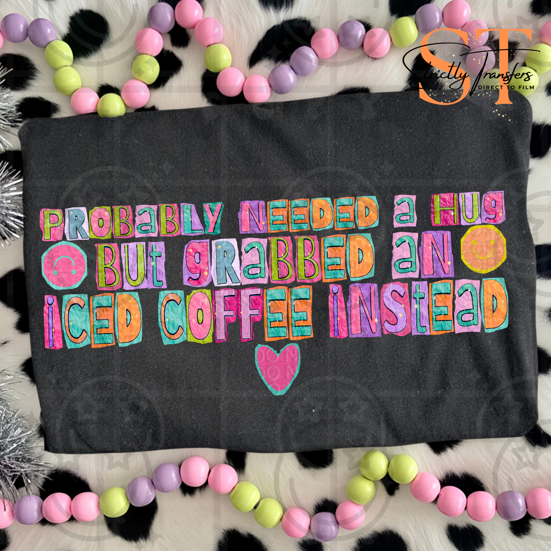 Probably Needed a Hug Grabbed an Iced Coffee Instead Direct to Film Transfers