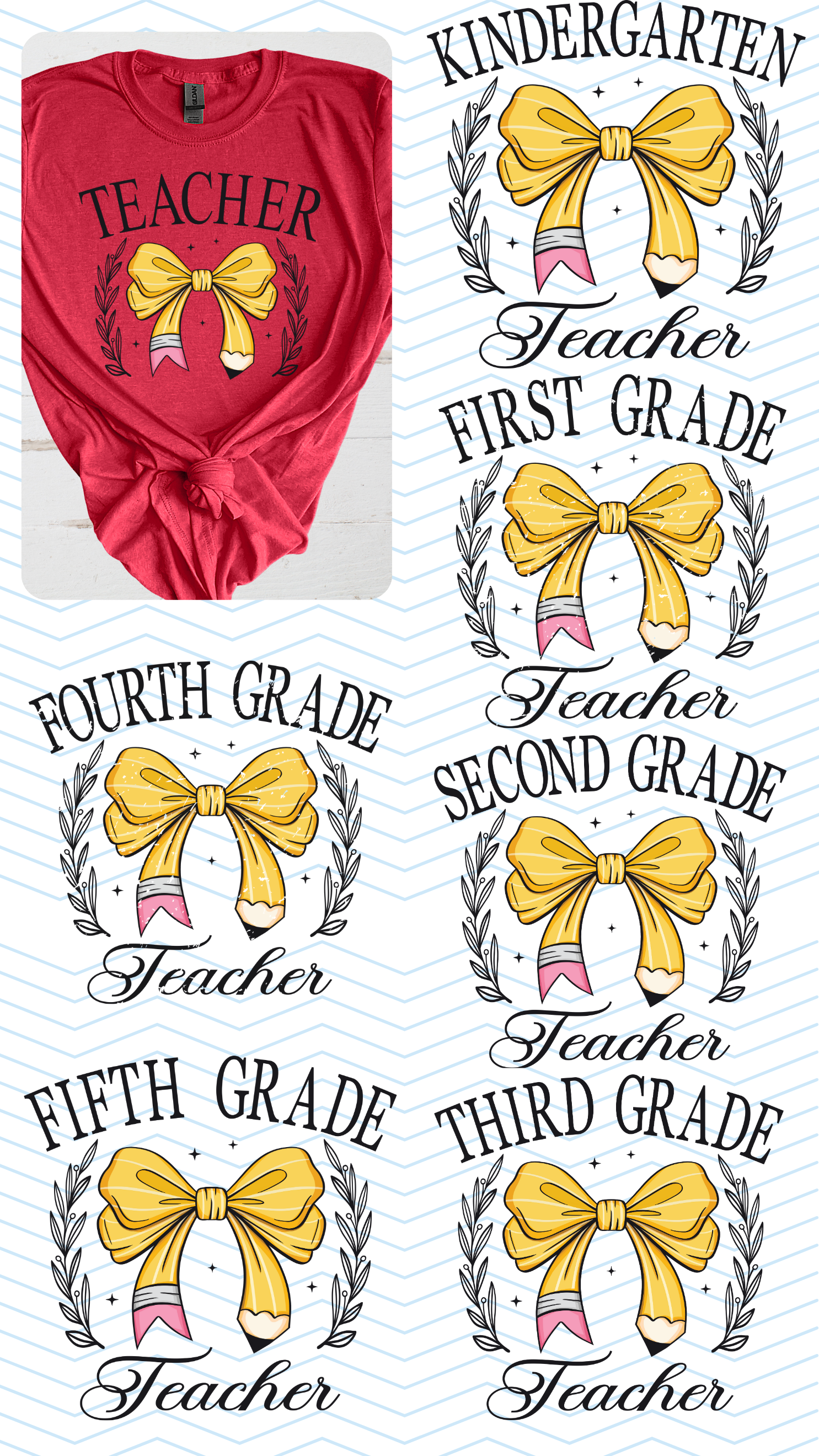 Teacher Varsity Coquette Pencil Bow Direct to Film Transfer