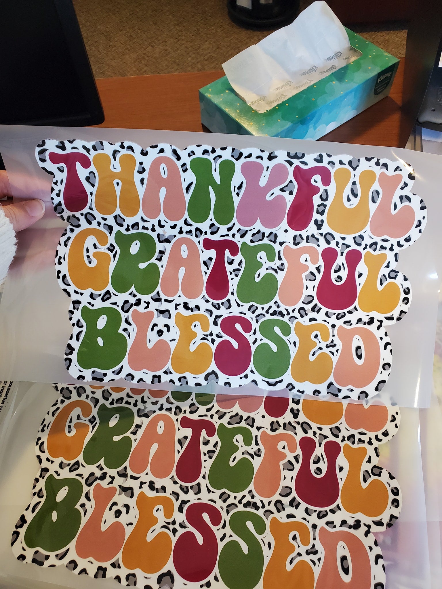 Thankful Grateful Blessed Leopard Fall Direct to Film Transfer