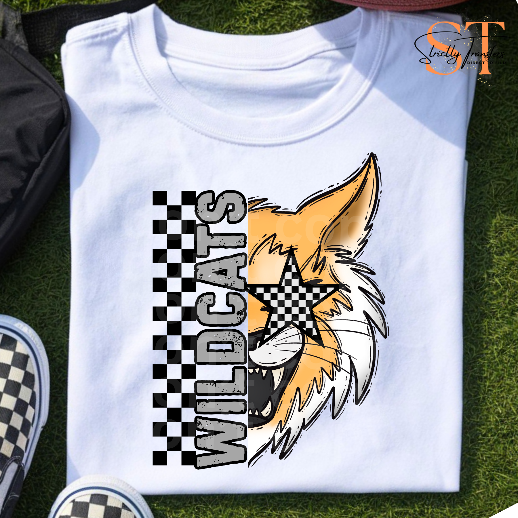 Wildcats Checker Star Mascot Head Direct to Film Transfers